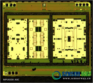 陀螺儀與加速度計(jì)MPU6500 ASIC芯片全圖: