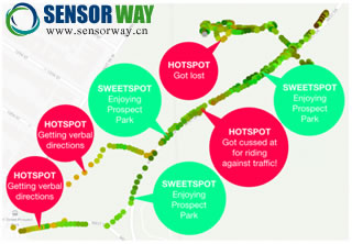 開發(fā)人員希望通過傳感器得到的思維地圖可以幫助用戶創(chuàng)建出紅點更少的路線,或者提醒他們紅點的位置,讓他們做好準備,從而減輕行車時的壓力與不安。而且,綜合多個用戶的思維地圖,城市規(guī)劃者可以設(shè)計出更適合騎車者的自行車道。