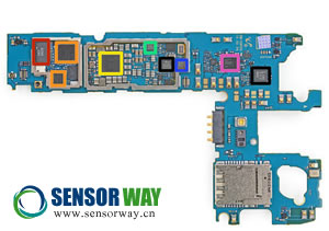 Galaxy S5中的加速度計/陀螺儀傳感器(藍色標(biāo)記)
