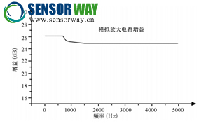 圖3是我們的設(shè)計(jì)的前兩級(jí)放大電 路的頻率響應(yīng)圖譜。從圖中可以看出來(lái), 在包括心音和心電信號(hào)的很大的一個(gè)寬頻率范圍內(nèi),電 路能夠?qū)π盘?hào)有效放大,并且其增益基本相同。有效的 減少了由于基線和信號(hào)放大不均所造成的誤診和漏診。