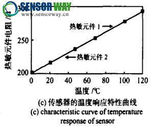 溫度測試采用標準油槽和冰水槽,熱敏元件標定范圍 為0~120'C,從圖5(c)可以看出:熱敏元件在溫度范圍為 0~120 C,2個熱敏元件對應的阻值幾乎均為200~291Q , 特征曲線呈較好的線性。