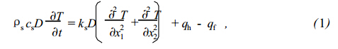 式中Ps為傳感器材料密度,kg.m-3; c3為比熱,J.kg1,K-1; ks為熱導率,W K-1 .m-1。
