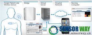 連接病人胸部的傳感器是心電圖預(yù)凝膠電極材質(zhì)的,據(jù)報(bào)道這種材質(zhì)具有非侵入性而且很舒適,所以戴著它的病人常常忘記它的存在。這款設(shè)備的電池續(xù)航時(shí)間有五天,而且用了一種新型無線電芯片,通過固定在墻上的橋接器可以進(jìn)行SensiumVitals設(shè)備間的無線通信以及醫(yī)院的IT基礎(chǔ)設(shè)施間的通信。