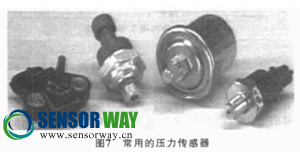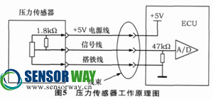 和其他輸入設(shè)備一樣, 壓力傳感器的工作電壓為5V, 由ECU提供。常用的壓力傳感器如圖7所示。