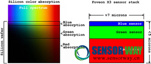 彩色圖像傳感器已應(yīng)用到幾乎所有常見的數(shù)碼相機和電子設(shè)備中(反射式的、全自動的、網(wǎng)絡(luò)攝像頭、手機相機、平板電腦等等),這些傳感器由彩色濾光片(通常為紅、綠、藍三色,亦稱RGB)及其下方的單色傳感器(黑色和白色)構(gòu)成。這種傳統(tǒng)結(jié)構(gòu)限制了傳感器中的每個像素只能感應(yīng)紅、綠、藍三色中的一種。要想從其它的顏色里面提取信息,就必須用到一些算法,而這一般都是制造商的最高機密。