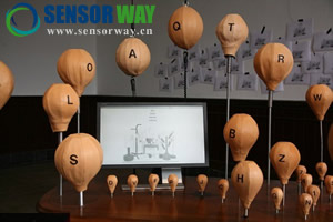 據(jù)報(bào)道,在這些形狀各異的沙袋上,印有不同的字母和數(shù)字以及傳感器,人們可以用手、腳踩出字母,踢出數(shù)字,或者用拳頭砸出一個(gè)句號(hào),然后通過傳感器使信息傳送到電腦。