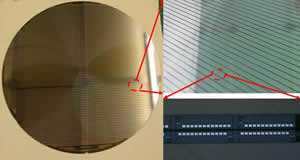 集成電路先導(dǎo)工藝研發(fā)中心與國內(nèi)公司共同建立了微電子所晶圓鍵合聯(lián)合實驗室,致力于MEMS器件的晶圓級鍵合封裝技術(shù)的開發(fā)。該實驗室開發(fā)的第一套Al-Ge晶圓鍵合封裝技術(shù)的鍵合環(huán)寬度僅有70um,其鍵合強(qiáng)度已超過70MPa、漏率小于5.0x10-3Pa·cm3/s(圖1和圖2分別為劃片前的晶圓照片和切割后的產(chǎn)品照片),該產(chǎn)品FT成品率(如圖3所示)優(yōu)于97%,與國際知名半導(dǎo)體代工廠所生產(chǎn)的同類產(chǎn)品指標(biāo)相當(dāng),達(dá)到國際一流水平。