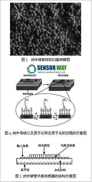 納米技術(shù)和生命科學(xué)是21世紀(jì)最前沿的兩大學(xué)科,納米技術(shù)的介入為生物傳感器的發(fā)展提供了無窮的想象空間?偟恼f來,納米顆?梢詮V泛地應(yīng)用于敏感分子的固定(納米金、碳納米管)、信號(hào)的檢測(cè)和放大 (納米金、納米磁粒子、熒光納米顆粒)、待側(cè)物質(zhì)的富集和濃縮(納米磁粒子)。由于納米結(jié)構(gòu)有著優(yōu)異的化學(xué)和物理性能,有著極高的比表面,有利于提高敏感分子的吸附能力,并能提高生化反應(yīng)的速度,因此被廣泛用于生物傳感器表面吸附層的制作,例如表面薄膜共振SPR檢測(cè)的等離子共振的金膜,氣體傳感器中催化劑固定的碳納米管以及懸臂梁結(jié)構(gòu)中提高吸附性能的納米膜等。此外,利用納米結(jié)構(gòu)的特性,可以制作全新的生物傳感器。實(shí)際上,生物分子本身就可以看作具有特定功能的納米器件,如酶分子對(duì)底物分子的識(shí)別和作用,它可以切斷底物分子的化學(xué)鍵并進(jìn)行重組。細(xì)菌視紫紅質(zhì)的蛋白質(zhì)對(duì)光很敏感,當(dāng)它暴露于光下時(shí)會(huì)發(fā)射出質(zhì)子,從而產(chǎn)生出可以檢測(cè)的微小電信號(hào)。它對(duì)特定頻率光的響應(yīng)受溶液中不同離子濃度的影響,因而可以用來檢測(cè)離子。