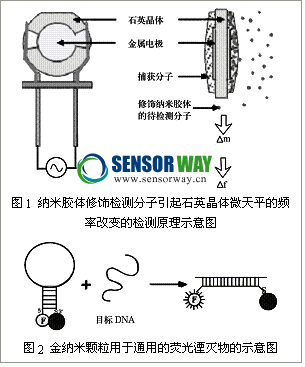 關(guān)于納米顆粒的研究很多,例如將功能性納米顆粒(如電子性質(zhì)的、光學(xué)性質(zhì)的和磁性的)固定在生物大分子(如多肽、蛋白、核酸)上,可制成用于生物信號(hào)檢測(cè)、信號(hào)轉(zhuǎn)換和放大的傳感器,其可分為聲波、光學(xué)、磁性和電化學(xué)等種類。