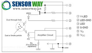 圖 1:Sharp GP2Y1010 灰塵傳感器示意圖。