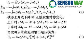 設(shè)差動(dòng)變壓器原邊激勵(lì)電壓為Ep、角頻率為ω、電流為Ip、電感為L(zhǎng)p、等效電阻為Rp。副邊電壓分別為E21、E22,互感為M1、M2。若忽略磁滯渦流及耦合電容的影響,可以得出: