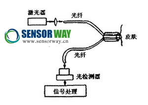 2、血流速度測量多普勒型光纖速度傳感器測量皮下組織血流速度的示意見圖2此裝置利用了光纖的端面反射現象,測量系統(tǒng)結構簡單。
