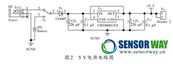 在設(shè)計(jì)的初期,RT9161?3.0 V 穩(wěn)壓芯片的輸入是直接9 V 輸入的,這樣高的輸出與輸入壓差比,會(huì)讓芯片發(fā)熱嚴(yán)重,功耗增大,后來就改接到LM1086,5.0 V的輸出端。